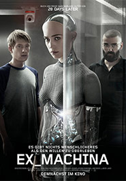 In dem intensiven psychologischen Thriller spielen Domhnall Gleeson, Oscar Isaac und Alicia Vikander die Hauptfiguren, die in einem spannungsgeladenen Dreiecksverhältnis mit- und umeinander kämpfen. Was bedeutet Bewusstsein, Gefühl, Sexualität, Wahrheit, Lüge sind die Fragen, denen EX MACHINA auf packende Art nachforscht.
